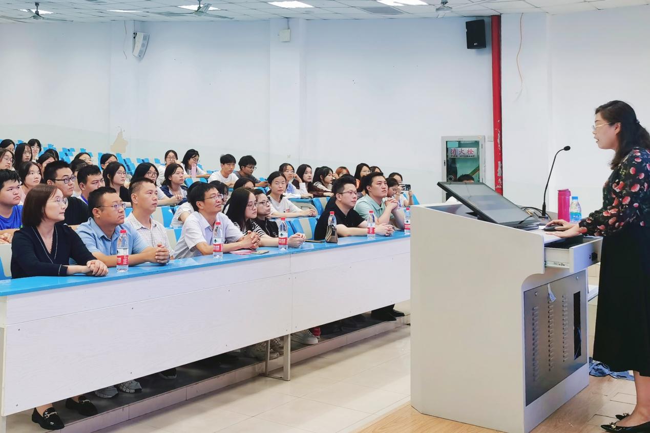 经管学院华亚副书记在药品经营与管理专业教育活动中结合学生工作对新生提出了期许,校企合作单位全亿健康常州分部人事经理虞丹参加了此次活动并分析了专业的就业前景。专业带头人许紫霞系统介绍了专业特色、培养目标、知识理论体系、校企合作单位等事项。