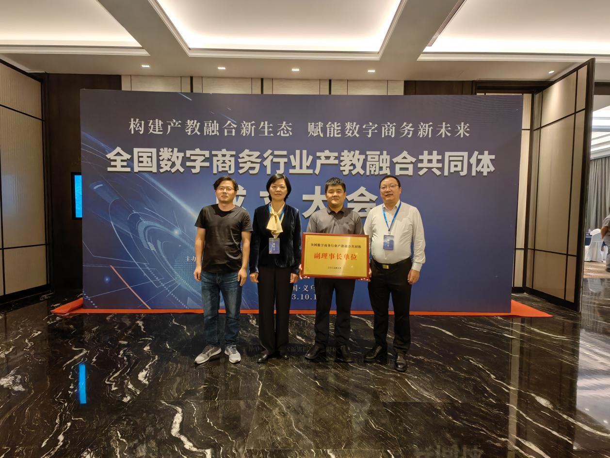10月15日至16日,全国数字商务行业产教融合共同体(简称“共同体”)在浙江义乌成立,副校长张雪华、招就处长徐拥军、经管学院院长李仁璞等参加了成立大会。全国电子商务职业教育教学指导委员会常务副主任陆春阳,商务部对外贸易司政策处副处长、义乌市人民政府副市长李睿,浙江省教育厅职成教处副处长任伟等领导出席,共同体成员单位代表约350人参加。