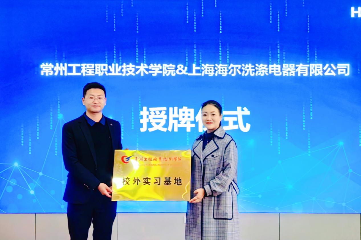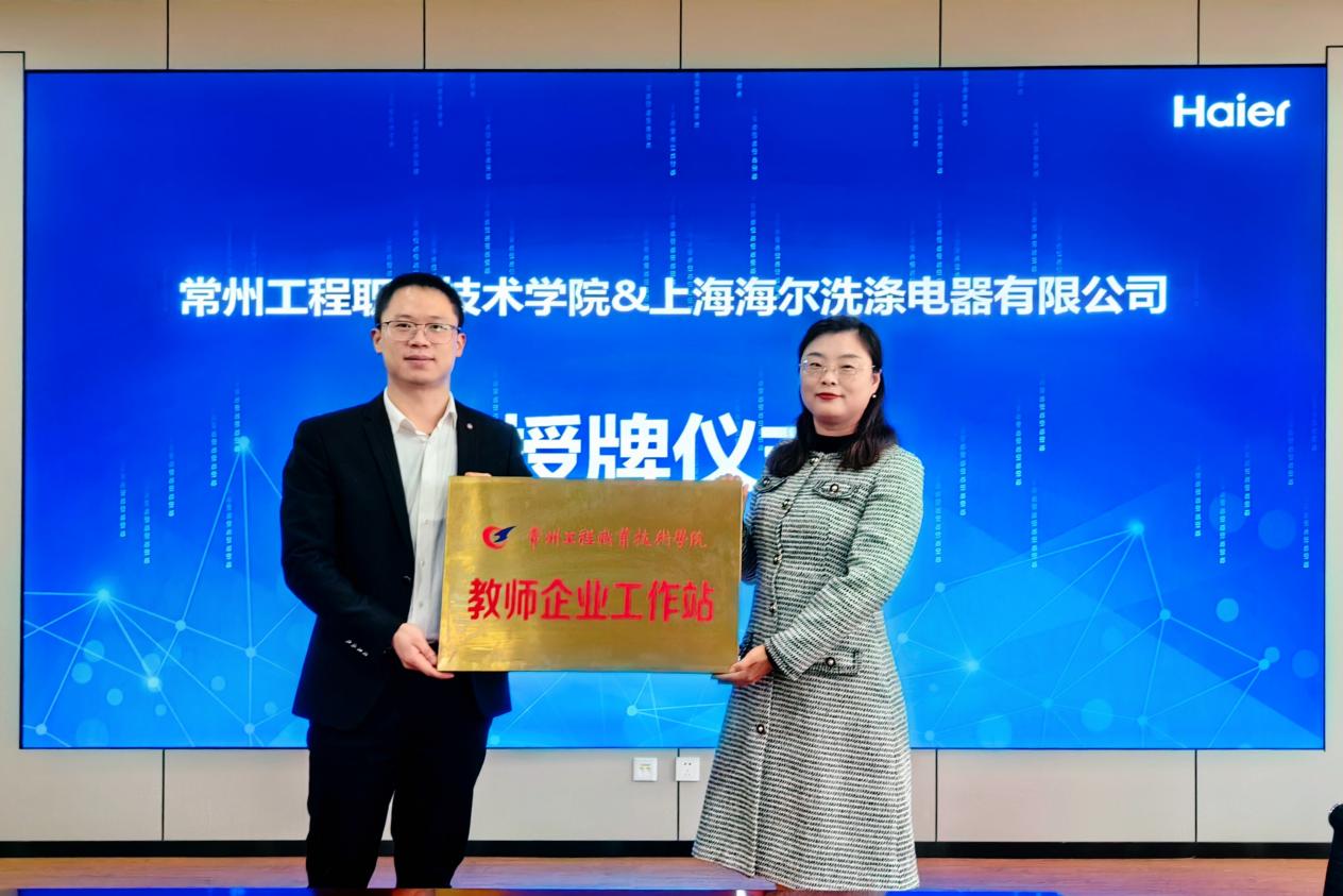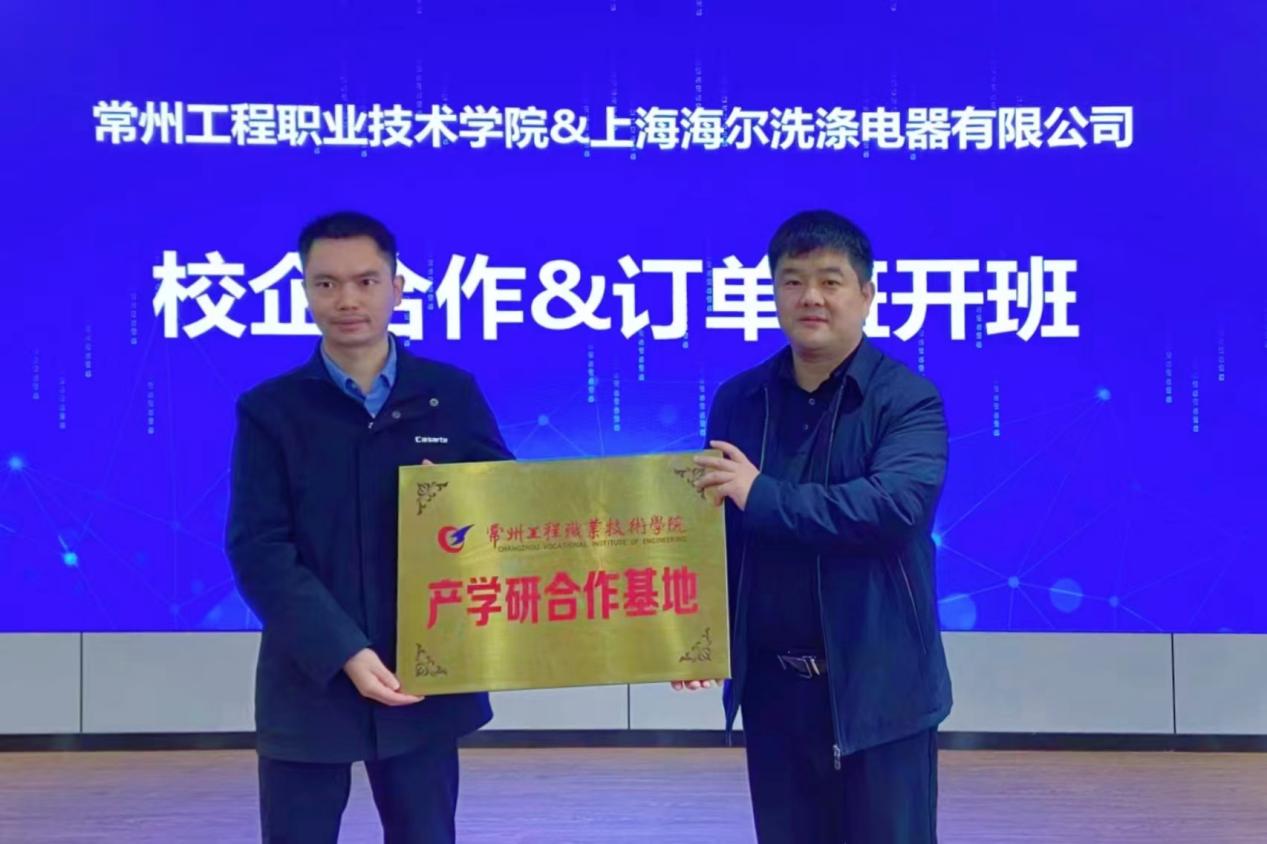 随后,在园区会议室举行“海尔订单班”开班仪式,邹地江和李仁璞分别致辞,上海海尔洗涤电器有限公司人力主管宣鼎介绍了海尔集团的战略发展规划,以及实习环境、晋升渠道和薪资福利等方面的情况。李仁璞、罗元和李枫分别授予海尔公司产学研合作基地、校外实习基地和教师企业工作站,希望通过校企多领域、深层次的合作,共同打造高水平技术技能人才。在座谈会上,双方交流了订单班培养的具体措施,回答了学生比较关心的在校学习、校外实习和就业问题。