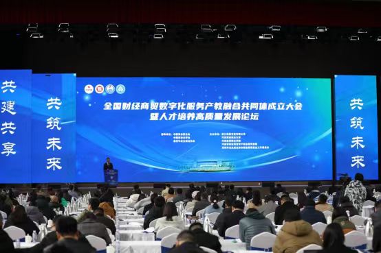 成立大会上,牵头组织单位致辞并对共同体成员单位表示热烈欢迎,秘书长宣读了《全国财经商贸数字化服务产教融合共同体章程》,随后两办意见小组成员、高校毕业生就业协会职业教育就业工作委员会副秘书长孙辉解读了《关于深化现代职业教育体系建设改革的意见》,江苏省高等教育学会秘书长、南京信息工程大学原副校长邓志良教授报告了《职业教育数字化转型内涵与路径》,银泰商业集团、亚马逊通讯技术服务(北京)有限公司、中国联通等知名企业的教育专家做了新文科数字化人才培养的探索与实践的相关报告。