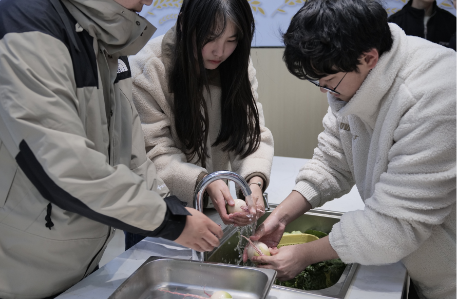 带着在润心园采摘的新鲜蔬菜,来到共享厨房,大家分工协作,洗菜、切菜、淋油、翻炒、调芡、摆盘,在锅台边忙得热火朝天,感知烹饪的魅力。美味的菜肴一道道出炉,蚝油生菜,清炒青菜等等,一阵阵的香味弥漫整个大厅。