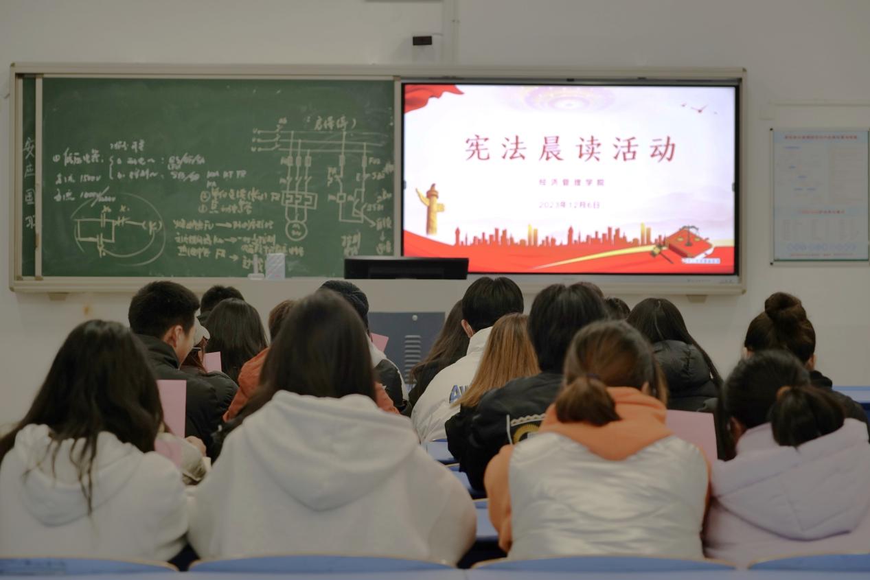宪法晨读,“声”入人心。在宪法宣传日,学院组织2023级全体570余名同学共同参与宪法晨读活动,让宪法精神充盈在、植根在广大经管青年心中,激励他们成为宪法的自觉遵守者和坚定捍卫者。