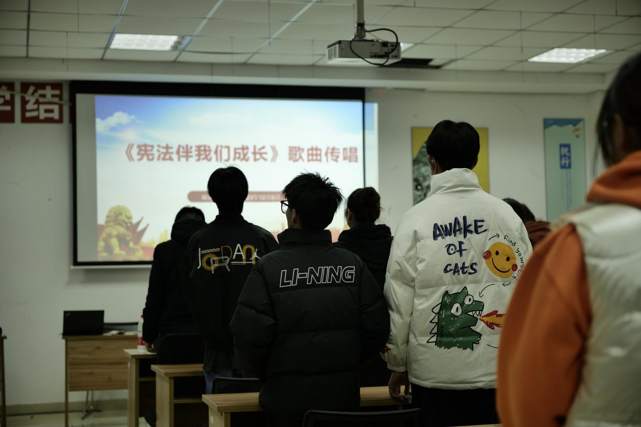 歌曲传唱,浸润心田。在《宪法伴我们成长》宪法主题歌曲传唱中,同学们以歌言情、以歌明志、以歌颂心。一张张朝气蓬勃的面庞,一声声热情洋溢的歌颂,表达了对宪法的尊崇之情,展现了经管青年的昂扬风貌和青春风采,促使同学们更加坚定不移地做宪法忠实崇尚者、忠诚维护者和积极践行者。