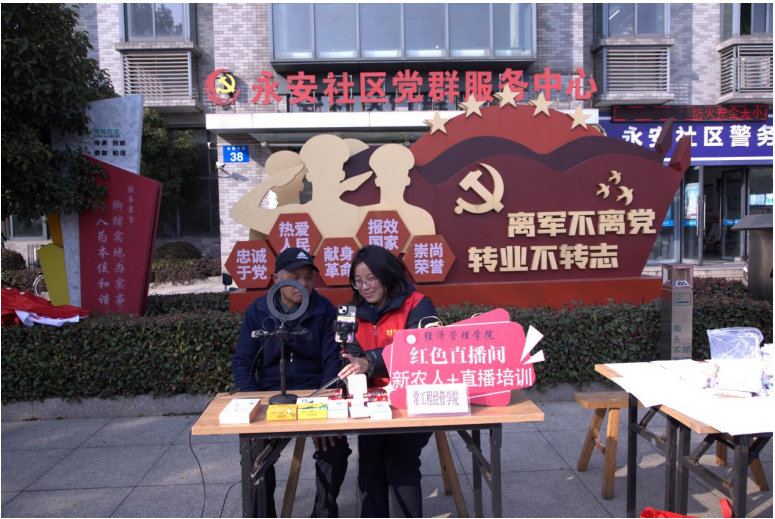 志愿服务在一线。学院引导青年学生主动向社区报到,尤其在乡村振兴等领域发挥作用。在永安社区,学生志愿者利用所学专业特长,通过开设公益课堂,开展“红色直播间:新农人+直播培训”活动,擦亮经管志愿服务品牌。同时,开展“雷锋故事”分享会,向社区儿童讲述雷锋成长经历,让儿童对雷锋精神有了更深刻的了解。
