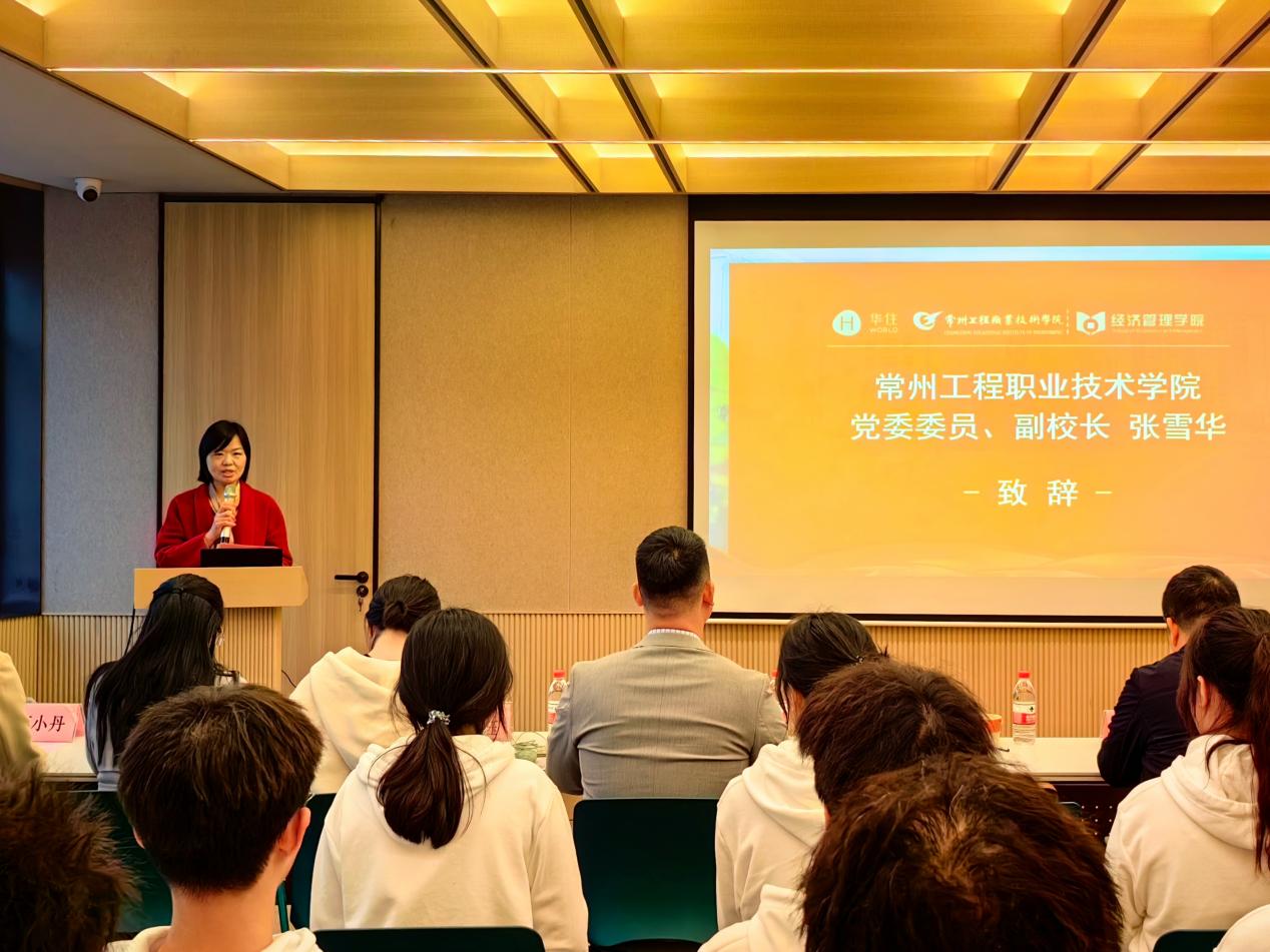张雪华应邀致辞,指出我校酒店管理与数字化运营专业与华住酒店集团依托中国特色学徒制(华住店长班)的人才培养模式,多年来始终坚持开展校企深度融合、协同育人实践,校企双方在专业建设、人才培养、实训平台建设、师资互聘、资源共享、实习就业等方面取得了显著成绩。未来,我校与华住酒店集团继续深化合作,共同推进卓越人才培养、专业数字化转型、产学研、国际化等领域的合作,为文旅行业培育更多高素质、高技能的优秀人才