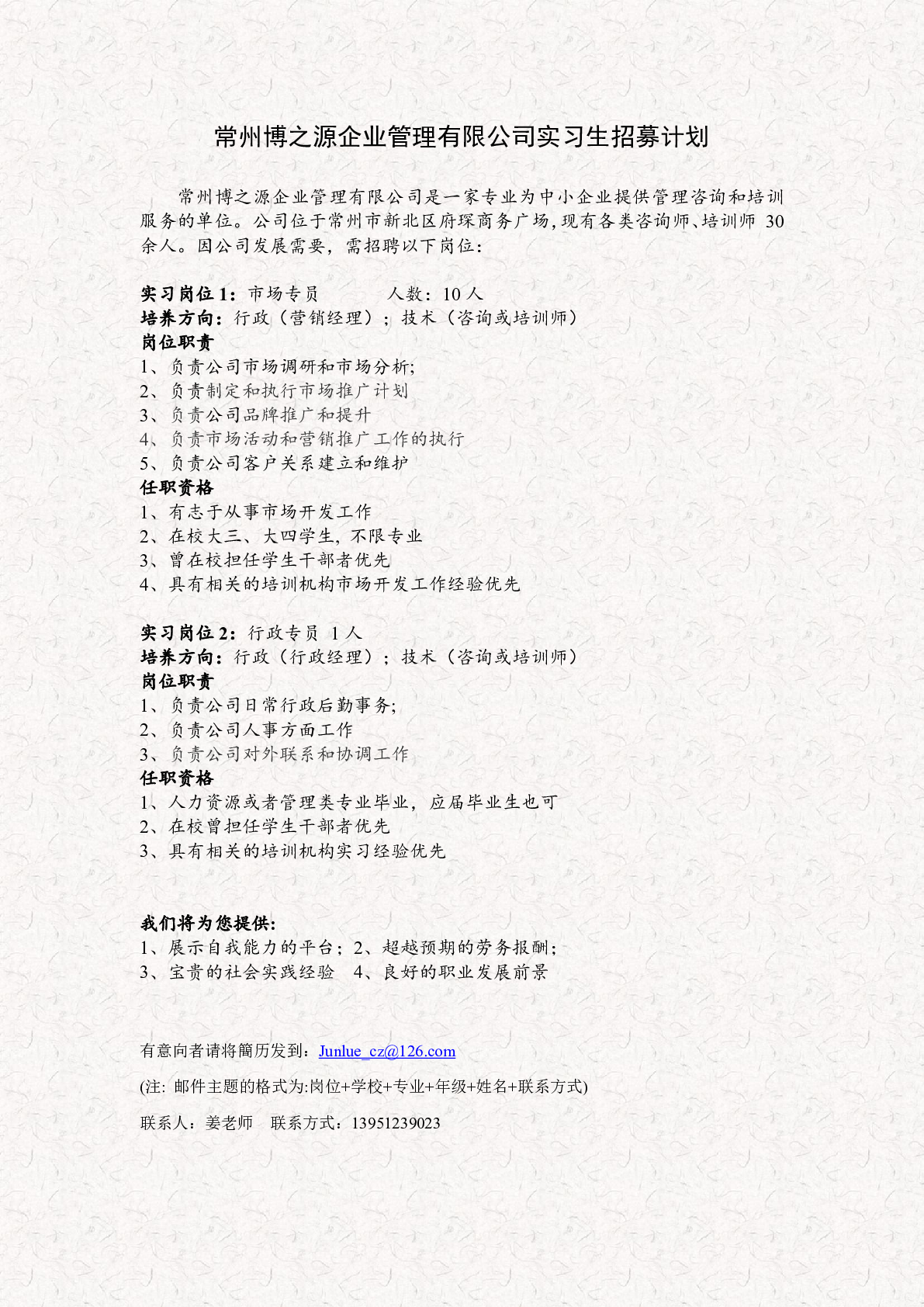 常州博之源企业管理有限公司招聘简章
