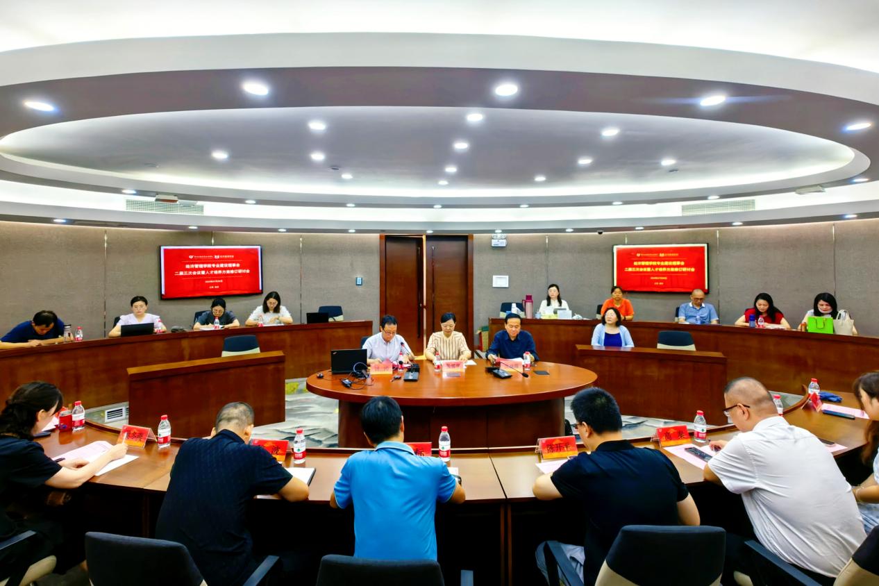 为了进一步优化经管学院专业人才培养方案,提高人才培养质量,持续推进课程体系建设,7月20日上午,经管学院召开专业建设理事会二届三次会议暨2024级人才培养方案修订研讨会和2024年度“说专业”活动。学校党委委员、副校长张雪华、理事会副理事长、华怡明都酒店集团总裁、省产业教授沈益锋及专业建设理事会理事、经管学院党政班子成员、专任老师参加了会议,会议由第二届专业建设理事会理事长、校党委委员、组织部部长刘涛主持。