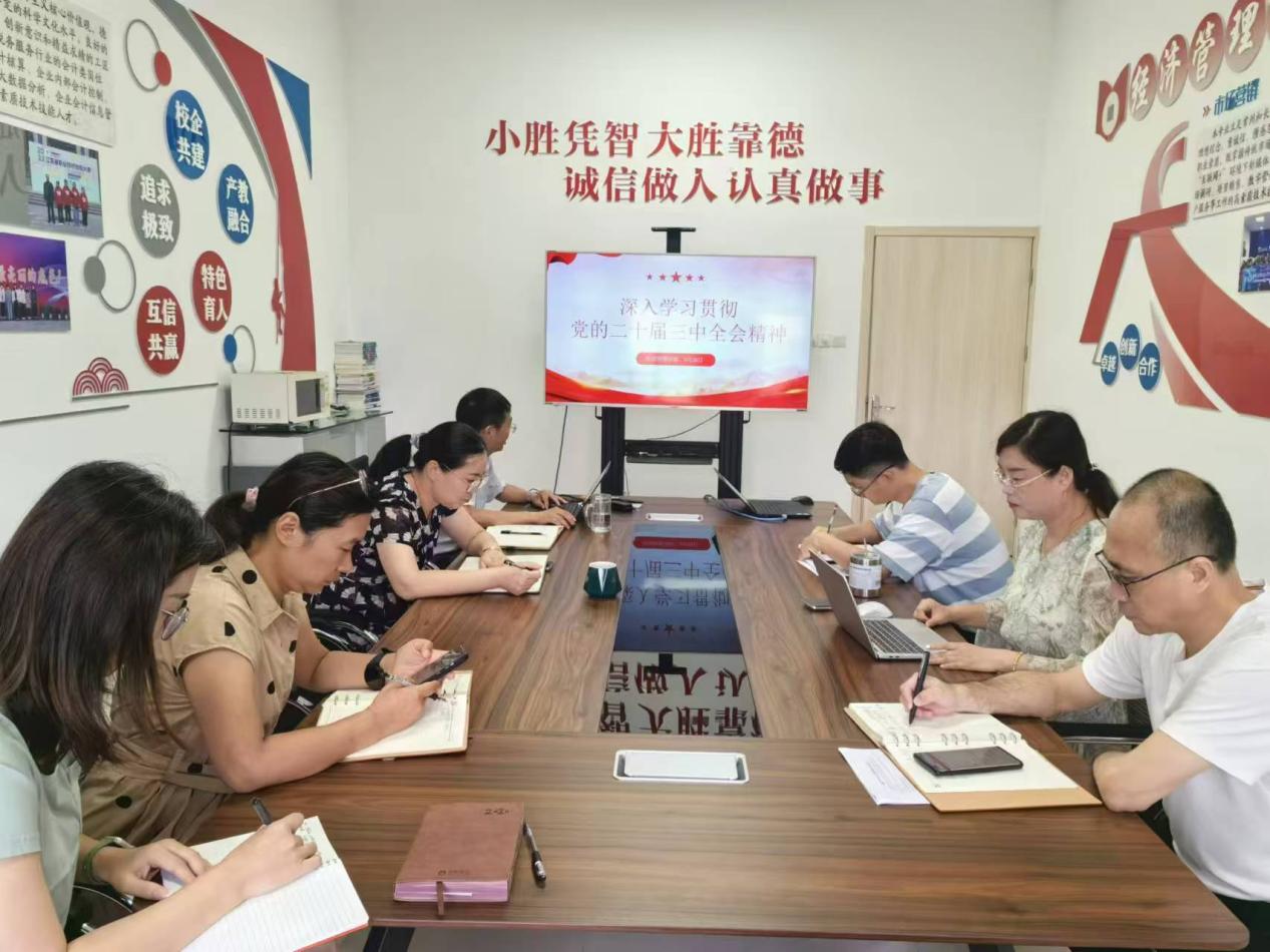 李枫、朱焱作重点发言。李枫围绕基层党支部建设发表感想。作为党支部书记,必须以党的二十届三中全会精神为指引,加强党支部的思想建设、组织建设和作风建设,提升党支部的凝聚力和战斗力,发挥党支部在教育、管理、监督党员以及组织、宣传、凝聚、服务师生方面的重要作用,为学院的发展提供坚实的组织保障。朱焱聚焦于工会职能,探讨工会积极发挥桥梁纽带作用的方式方法,切实维护教职工的合法权益,调动教职工的工作积极性和创造性,努力创造良好的工作环境和发展空间,为学院的改革发展凝聚人心、汇聚力量。
