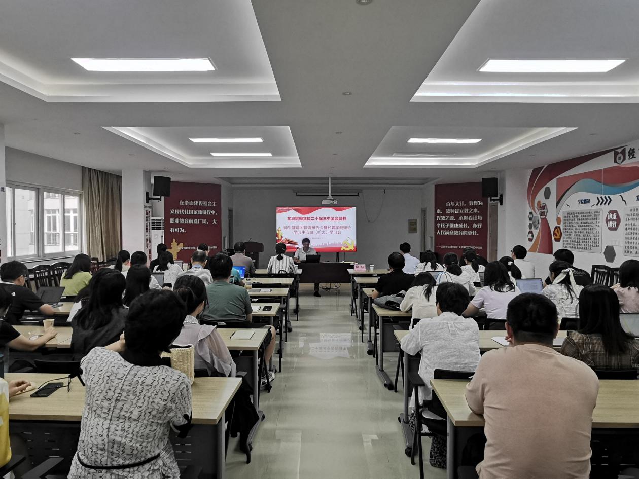 报告会上,张雪华紧紧围绕全面深化改革、推进中国式现代化,从“深刻领悟党的二十届三中全会是又一次划时代的重大部署”“坚持吃透改革要求,深入学习贯彻党的二十届三中全会精神”“践行改革新使命,逐梦教育强国路”等三个方面出发,对全会的重大意义和深远影响、进一步全面深化改革的总目标、重大原则、重大问题、重要部署等多个方面作了系统阐释和深刻解读。报告内容翔实丰富,解读精准透彻,对全面准确把握党的二十届三中全会精神,推动学院各项工作再上新台阶具有很强的实践指导意义。