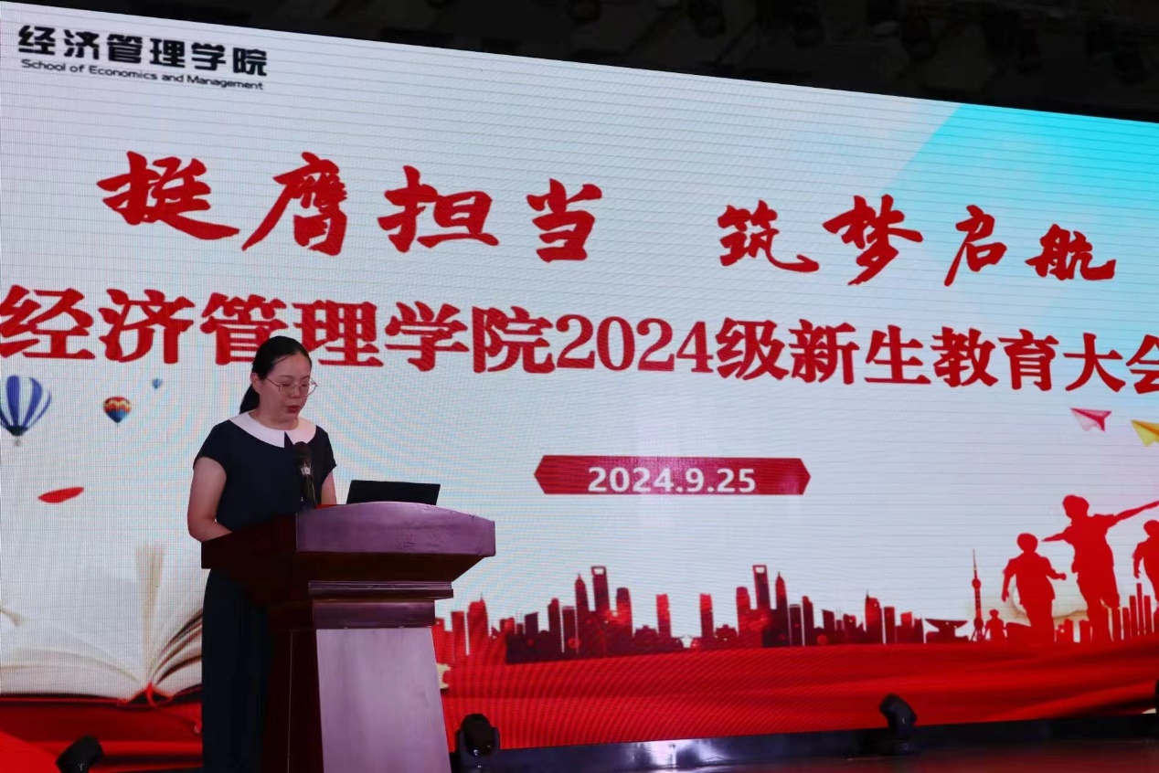 为帮助2024级新生更好更快地融入大学学习和生活,引导做奋进有为青年,9月25日晚,经管学院2024级新生教育大会在大学生活动中心105多功能厅举行。校党委保卫部部长侯雪燕、经管学院党总支书记徐标、院长李仁璞、副院长罗元、教师代表、全体辅导员、班主任、在校生代表及2024级全体新生参加大会。会议由经管学院党总支副书记华亚主持。