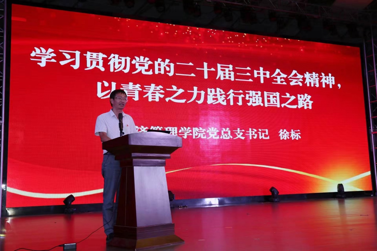 徐标以《学习贯彻党的二十届三中全会精神,以青春之力践行强国之路》为题向2024级新生讲授思政大课。他代表学院向2024级全体新生致以热烈的欢迎和诚挚的问候。他对新生提出四点期望:一是要胸怀大志,做有理想的追梦者;二是要博学笃行,做有本领的实践者;三是要修身立德,做有品德的奉献者;四是要勇于担当,做有担当的奋斗者。希望同学们主动关注国家经济发展的动态,为解决经济社会发展中的问题贡献智慧和力量,在学院院训的激励下,努力学习,积极进取,为实现中华民族伟大复兴的中国梦贡献自己的力量,让青春在为祖国、为人民、为民族的奉献中焕发出绚丽光彩!