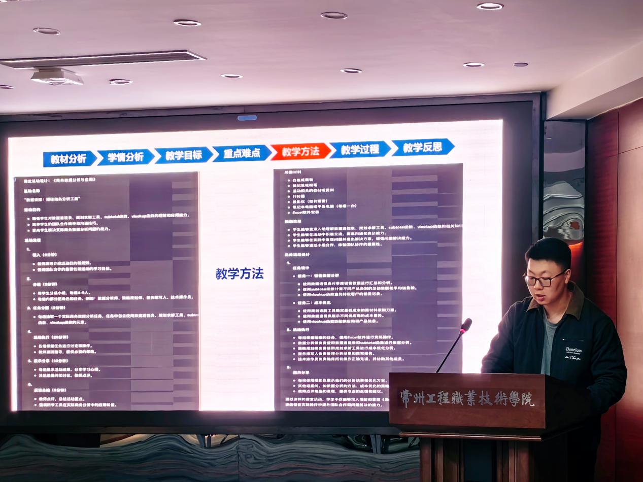 在数字化时代背景下,为了紧跟人工智能(AI)技术的发展步伐,响应学校《关于开展2024年秋季校院两级公开示范课活动的通知》精神,经管学院于11月20日下午13:30在图书馆第一会议室成功举办了2024年“AI+教学”公开示范课活动,邀请常州工业职业技术学院数字商务学院院长施新平、我校创新创业学院院长仇志海、质量管理办公室副主任杨波、人工智能教学中心教研室主任乔玉涛担任评委,经管学院全体教职工参加,活动由经管学院副院长罗元主持。