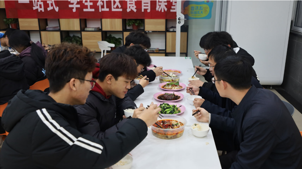 鲜蔬烩就情绵,舌尖联通心间。带着在润心园采摘的新鲜蔬果,同学们在共享厨房悉心清洗、精心烹饪。一次具有特殊意义的和老师们的晚餐之约伴随着夜幕的降临温馨开始,大家热情洋溢地分享了参加润心园活动的初心、过程中的心得、成长与感悟,学院党总支书记徐标表示,通过亲手播种、培育与收获,同学们切实感受到了劳动的价值与意义,培养了坚韧不拔的意志品质、团结协作的团队精神以及对大自然和生命的敬畏之心,不仅仅是一次次简单的农事体验,更是一堂生动且深刻的劳育与心育融合课程。随后,学院党总支副书记华亚、学工办主任叶星围绕着学生关心的热点话题与同学们展开探讨,有效拉近了师生距离,建立了学生交流新机制。