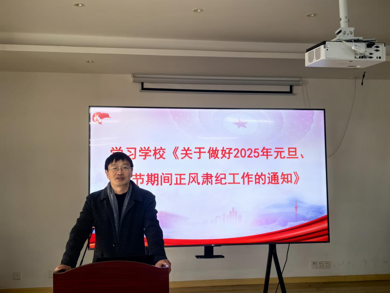 会中,徐标带领全体教职工学习了学校《关于做好2025年元旦、春节期间正风肃纪工作的通知》。这一通知要求全体教职工在节日期间要严格遵守党纪国法,增强纪律意识和廉洁意识,自觉抵制各种不正之风,树立良好的教师形象。要注重师德师风建设,以高尚的师德和良好的师风引领学生健康成长。
