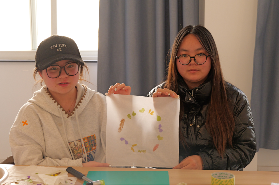 在非遗植物敲拓染画体验活动中,同学们走进“润心园”劳动实践基地,采摘油菜花、野花、蔬菜叶等植物,随后前往一站式学生社区“学业加油站”,通过敲打、拓印将植物的形态与色彩定格在方巾上。创作过程中,同学们专注于植物与布面的每一次触碰,在传统技艺的韵律里悄然释放压力,感受自然与心灵的无声对话。