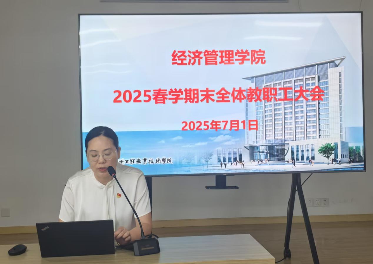 7月1日,值中国共产党成立 104 周年之际,经管学院2025年春学期期末全体教职工大会顺利召开。会议由学院党总支副书记华亚主持,全体教职工参会。会议全面总结本学期工作成果,深入分析存在问题,并部署下阶段重点任务,为学院高质量发展凝聚共识、明确方向。