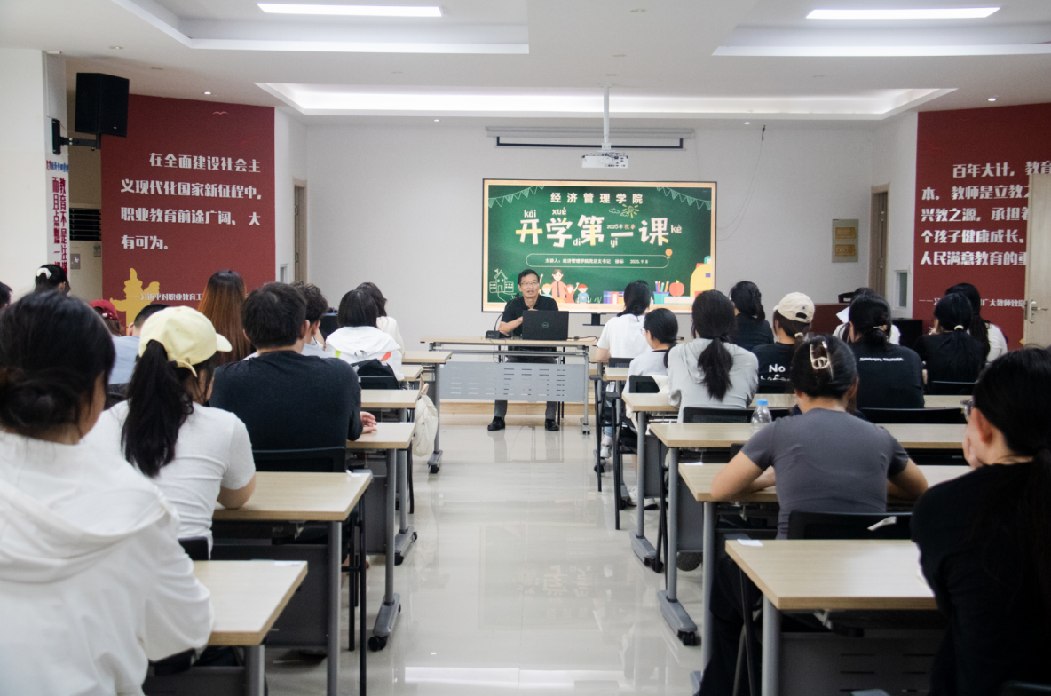9月8日下午,经管学院党总支书记徐标担任主讲人,他以《承前启新,在奋斗中锚定成长航向》为题,为2024级学生讲授“开学第一课”。在讲授中,他以9月7日参加营销9512班入校30周年返校活动为切入点,结合自身多年工作经验与实践感悟,从学习、工作、生活、思想及班集体建设五个维度,与同学们展开深入交流。鼓励大家既要客观审视自身优势与潜力,建立“相信自己”的坚定信心,也要以“勇争第一”的劲头不断突破,在新学期实现自我迭代与成长。大二处于“从适应大学到深耕专业”的承上启下关键阶段,结合学院人才培养定位,他明确提出三点希望:一是深耕专业,打牢“立身之本”,强调专业知识是未来职业发展的核心支撑,叮嘱同学们要沉下心、钻进去,吃透理论精髓、掌握专业技能,筑牢学业根基;二是勇于实践,锤炼“成事之能”,倡导大家主动走出“舒适区”,积极参与专业技能竞赛、志愿服务等实践活动,在解决实际问题中提升综合能力;三是涵养格局,树立“向上之志”,引导同学将个人理想与专业发展、时代需求相结合,树立长远目标,涵养胸怀与格局。最后,他要求同学牢记经管学院“小胜凭智,大胜靠德,诚信做人,认真做事”的院训精神,将品德修养与专业学习同步推进,以更饱满的热情、更务实的行动,努力成长为更优秀的自己,为未来发展积蓄充足能量。