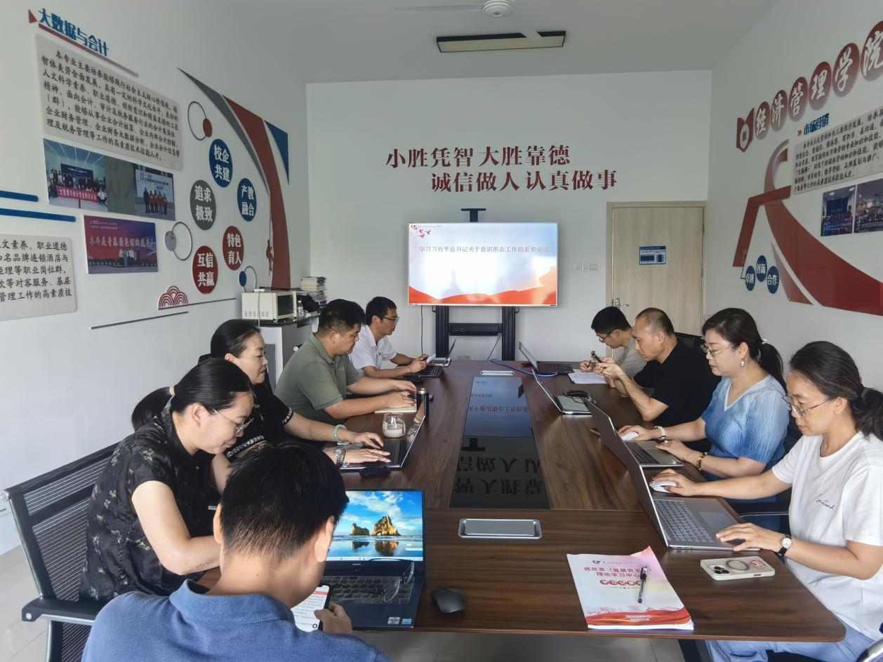 最后,徐标作总结发言。他对本次学习研讨的成效给予肯定,并就学院下一步意识形态工作提出四点要求:一是要深刻认识意识形态工作的重要性。持续强化理论学习,以党的创新理论武装头脑、指导实践、推动工作,进而巩固和壮大主流思想舆论。二是切实落实意识形态工作责任制。学院领导班子带头担当起政治责任,各党支部书记及各部门负责人切实履行好自身职责,将意识形态工作纳入重要议事日程,与教学、科研等工作一同部署、落实、检查和考核。三是强化阵地管理,尤其是网络安全方面。加强对学院网站、社交媒体等网络平台的管理,严格审核发布内容,杜绝不良信息传播。引导师生文明上网、依法上网,共同维护网络空间的清朗有序。四是增强服务师生意识。将意识形态工作与服务师生紧密结合,通过提供优质、高效的服务,增强师生对学院的认同感和归属感,从而更好地凝聚师生力量,共同推动学院高质量发展。(经管学院 文图:刘加玲 审核:张明、华亚、徐标)