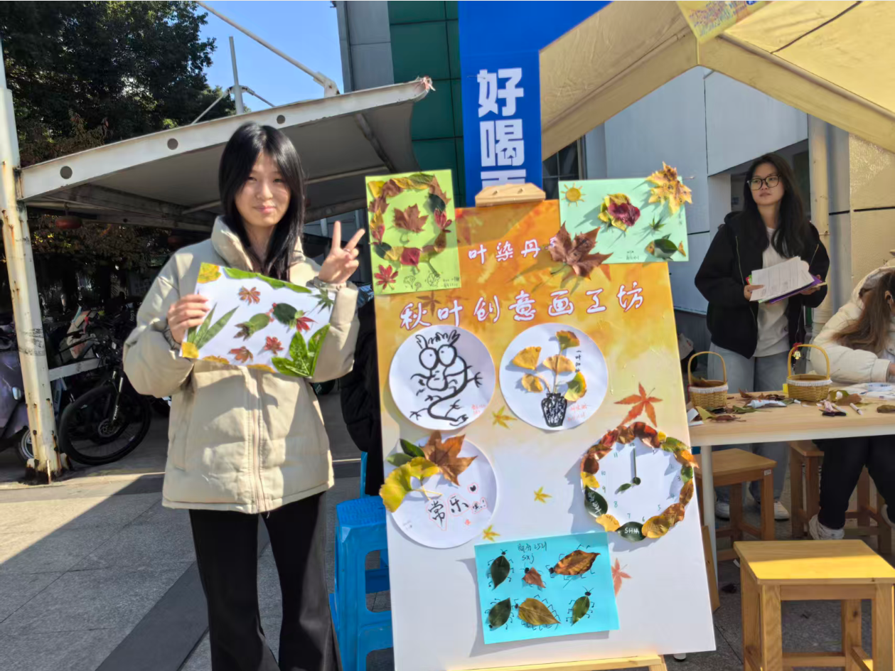 为进一步提升学生心理健康素养,营造温暖和谐的校园心理氛围,在“12·5”心理健康周期间,经管学院“叶染丹青——秋叶创意画”手工体验活动在弘毅广场开展。来自学院各年级的学生积极参与,在秋叶与创意的碰撞中释放压力,感受自然与艺术融合的治愈力量。
