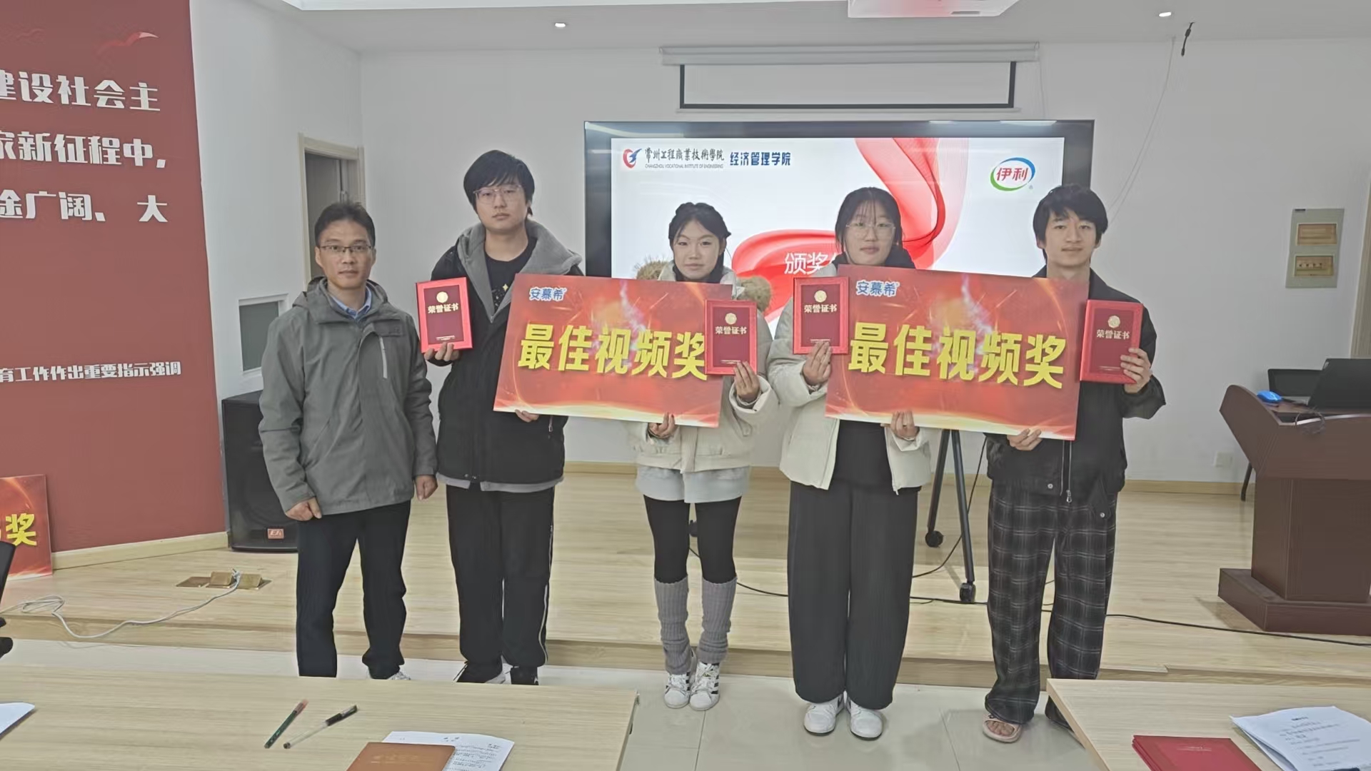 本次活动分别评选出一等奖、二等奖、三等奖、优秀奖、最佳创意奖等七个类别的奖项,常州彩羽食品公司提供奖学金。颁奖大会在12月10日举行,伊利集团常州城市经销商常州彩羽食品公司总经理徐晓军,负责人缪文莉、经管学院党总支书记徐标、院长李仁璞、市场营销专业教师、参赛学生共60余人参加,张弩老师主持。