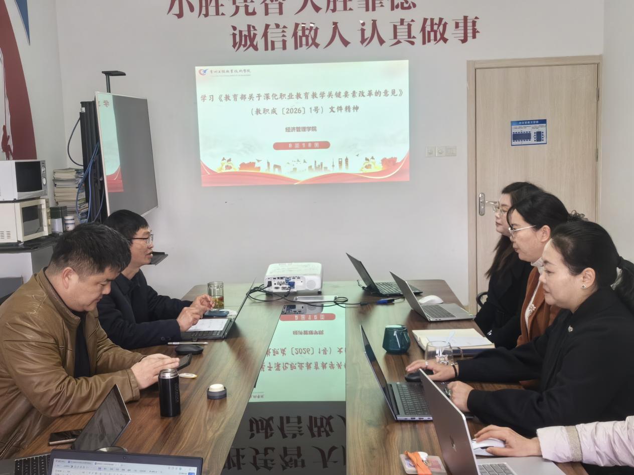 经管学院院长李仁璞领学《教育部关于深化职业教育教学关键要素改革的意见》(教职成〔2026〕1号)文件精神,立足新时代高等教育改革发展要求,深入解读专业体系优化、课程内涵提质、师资队伍建设、实践教学创新等关键改革举措,着力推动人才培养质量持续提升,为学院深化内涵建设、提升人才培养质量提供政策遵循与行动指引。