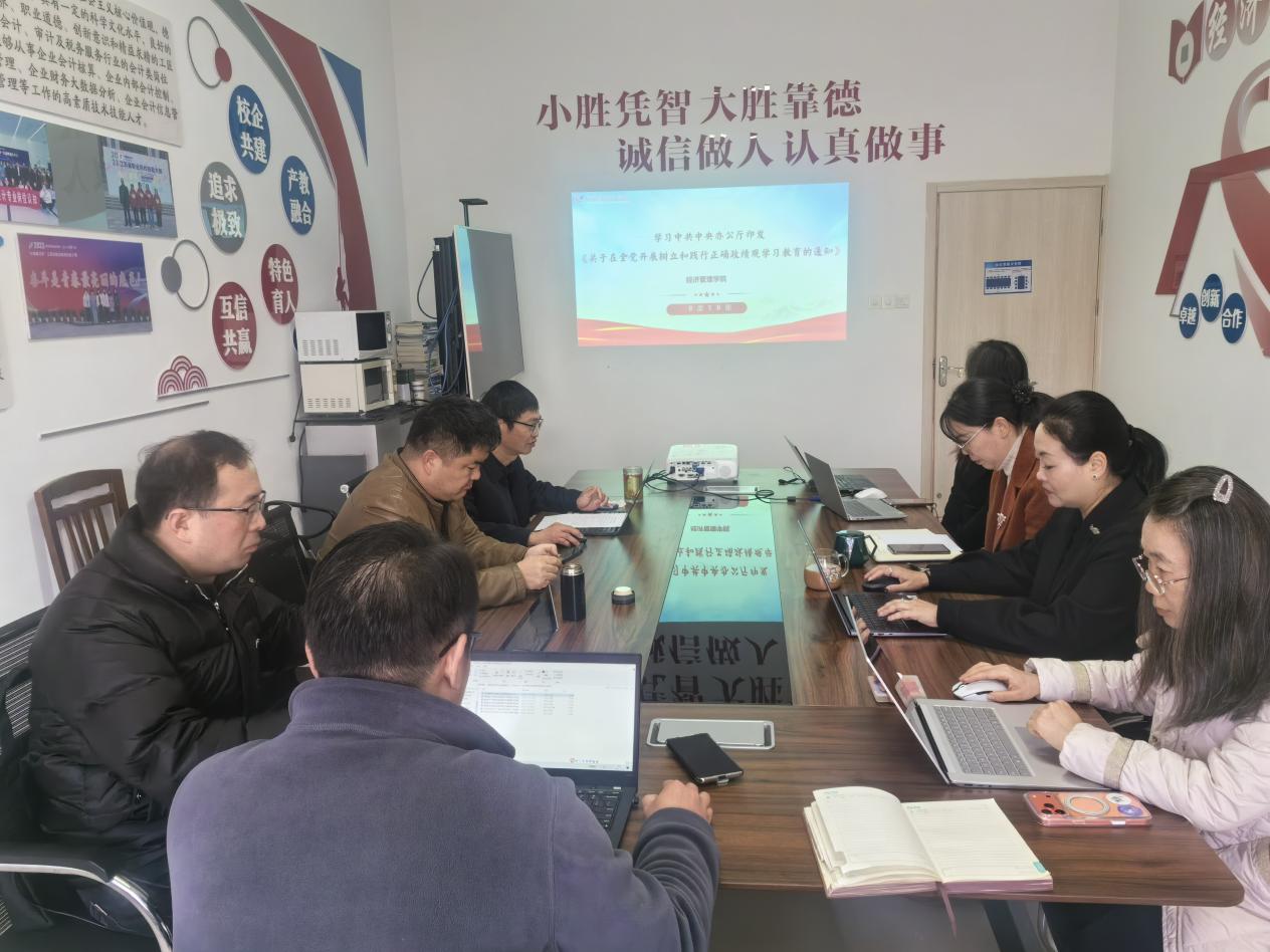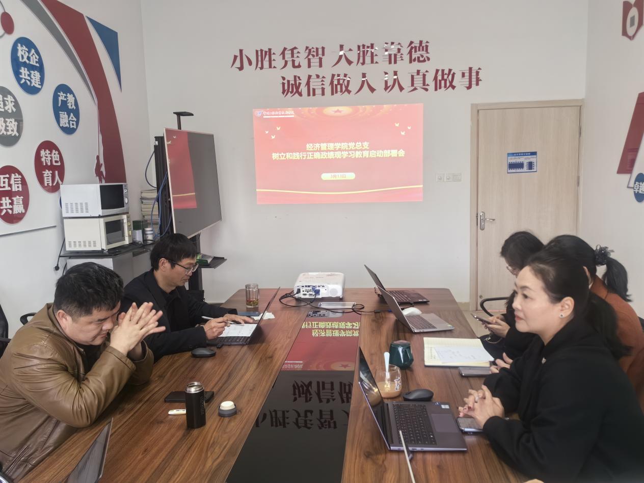 为深入学习贯彻习近平新时代中国特色社会主义思想,全面落实党中央决策部署及教育领域改革要求,切实把思想和行动统一到高质量发展上来,3月13日,经管学院党总支理论学习中心组开展本年度第二次集体学习,同步启动树立和践行正确政绩观学习教育。党总支委员、班子成员、两办主任、教研室主任、党支部书记参加了本次学习,学习会由党总支书记徐标主持。