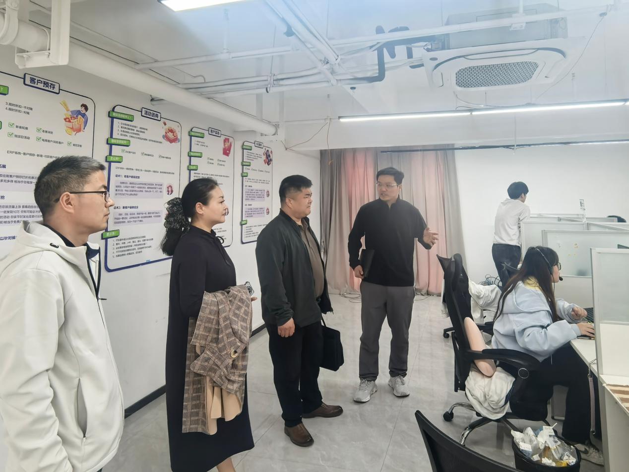 顾蓓陪同一行参观了企业办公环境、数字展示中心及实习实训场地,详细讲解了企业运营模式及实习生培养机制。