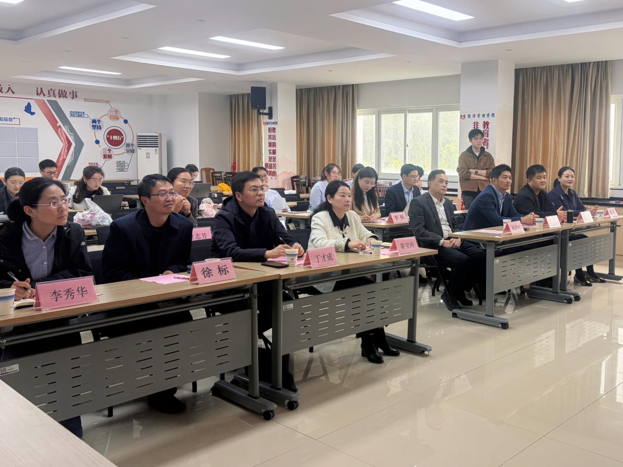为全力备战2026年江苏省职业院校技能大赛,进一步提升参赛团队的综合竞争力,帮助师生优化细节、争创佳绩,4月14日下午,数智商贸学院在合一楼C303会议室举行赛前汇报演练活动。校党委书记杨劲松、党委副书记黄宝玲、副校长黄一波莅临指导,教务处及数智商贸学院相关领导、省赛一等奖获奖教师担任评委。活动由数智商贸学院副院长罗元主持。