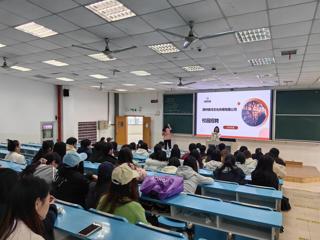 招聘会现场气氛热烈,秩序井然。三家企业分别就企业文化、发展前景、实习生培养计划及具体招聘岗位进行了详细介绍。上海自然堂集团有限公司聚焦于其电商直播运营、新媒体内容营销、私域用户管理等岗位需求,展现了传统知名品牌在数字化转型中对数字商贸人才的新期待。常州攀升信息技术有限公司作为本土信息技术服务商,带来了大数据分析助理、电商平台运维、数字化营销专员等岗位,重点考察学生的技术应用与实践能力。湖州锦鸿文化传媒有限公司此前已与学院在专题调研、赛事备赛(如2026年省职业院校技能大赛)中有深入合作,此次重点招聘AI直播运营、短视频内容策划、跨境电商直播助理等岗位,其展示的AI智能选品、虚拟数字人直播等前沿应用,再次引发了学生的浓厚兴趣。